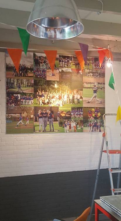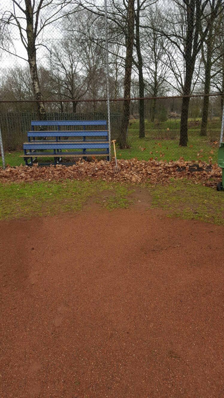 Hierdoor hebben we gisteren de velden (ver) bladervrij kunnen maken. Zijn alle dugouts Kikker, onkruid en rotzooi vrij. Is de honkbaltribune (eindelijk) een laag blauwe verf rijker. Is het officiële beeballveld in aanbouw. Hebben alle reclameborden van onze sponsors een sopje gehad, net als de ramen van de kantine. En de rest van de kantine overigens ook, na van binnen helemaal opgeruimd en geordend te zijn. Hebben we nieuwe halogeenlampen en nog een heeeel aantal andere zaken die ik vast vergeet te noemen. Wij zijn in ieder geval trots op het eindresultaat!