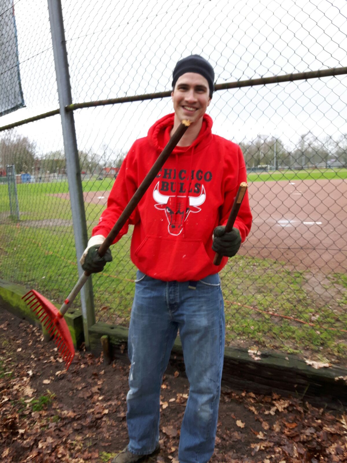Hierdoor hebben we gisteren de velden (ver) bladervrij kunnen maken. Zijn alle dugouts Kikker, onkruid en rotzooi vrij. Is de honkbaltribune (eindelijk) een laag blauwe verf rijker. Is het officiële beeballveld in aanbouw. Hebben alle reclameborden van onze sponsors een sopje gehad, net als de ramen van de kantine. En de rest van de kantine overigens ook, na van binnen helemaal opgeruimd en geordend te zijn. Hebben we nieuwe halogeenlampen en nog een heeeel aantal andere zaken die ik vast vergeet te noemen. Wij zijn in ieder geval trots op het eindresultaat!